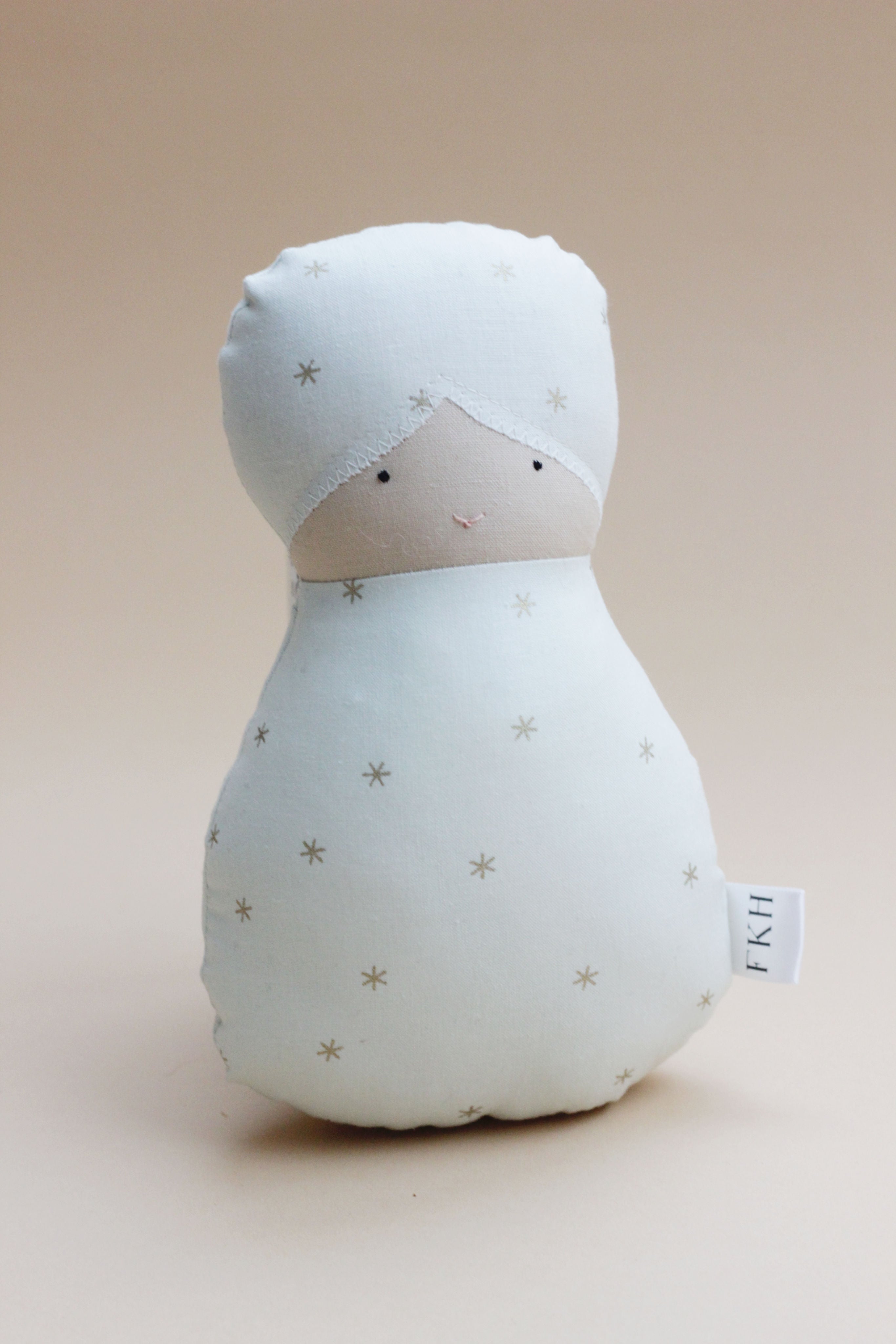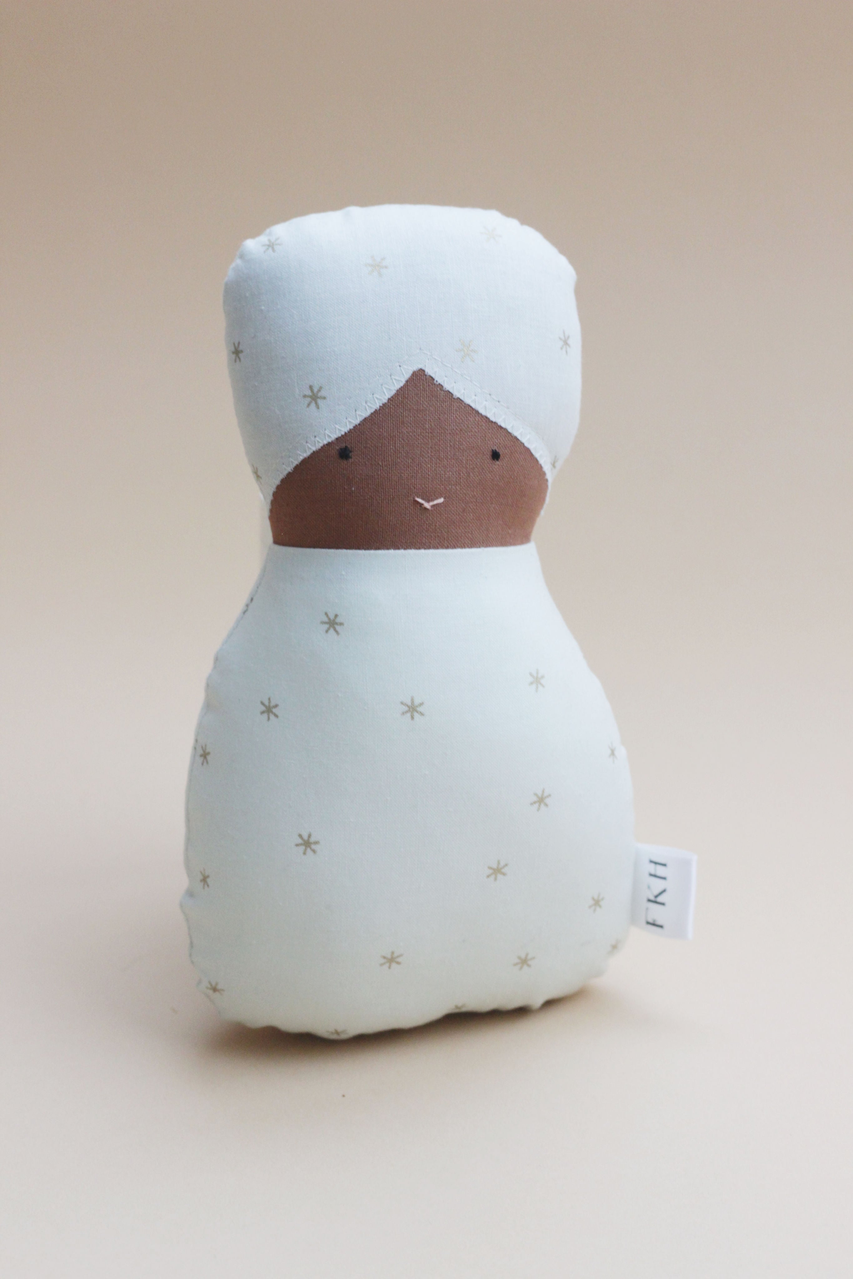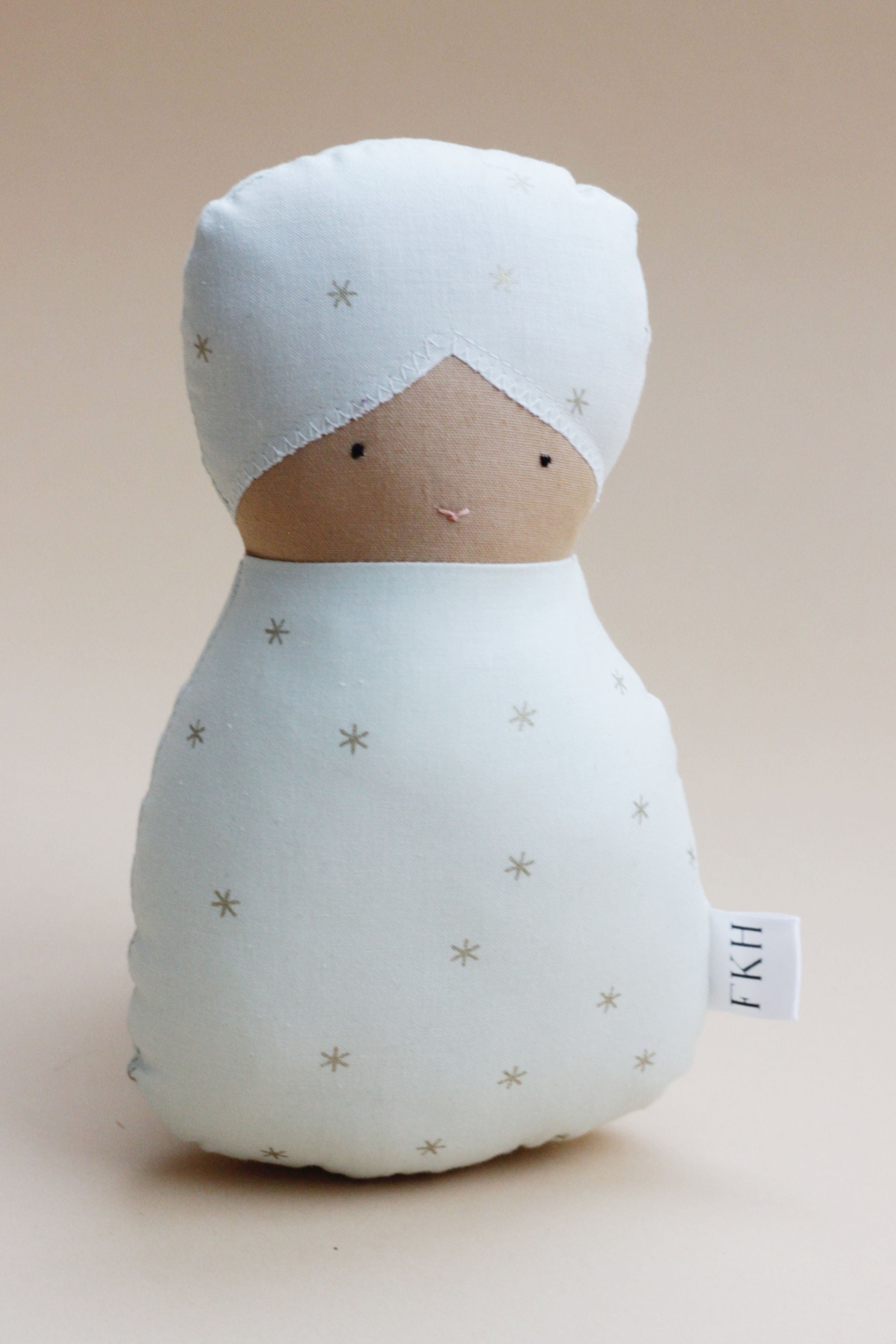 These First Baby Dolls are intentionally designed to facilitate maximum imagination and play. With early development in the forefront of our minds, we’ve created a doll that will allow young children aged 6 months and up the chance to grow their social and emotional skills. From fitting perfectly in little hands, to the weight of each doll, to the face. All the details have been researched, and handmade love poured into each stitch.