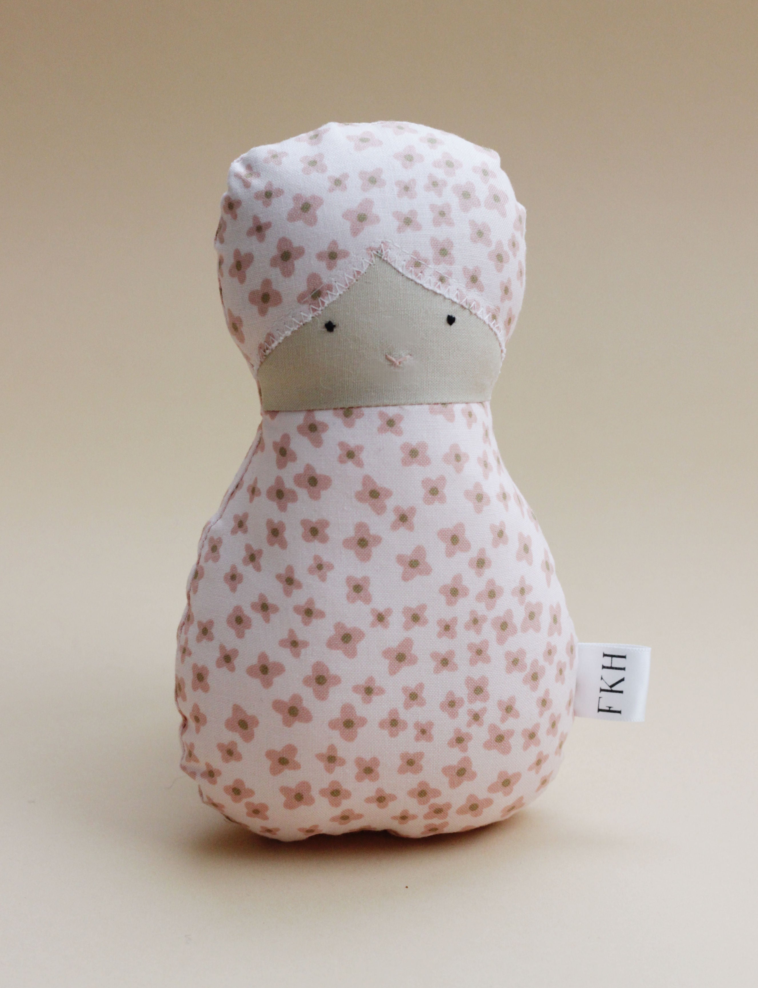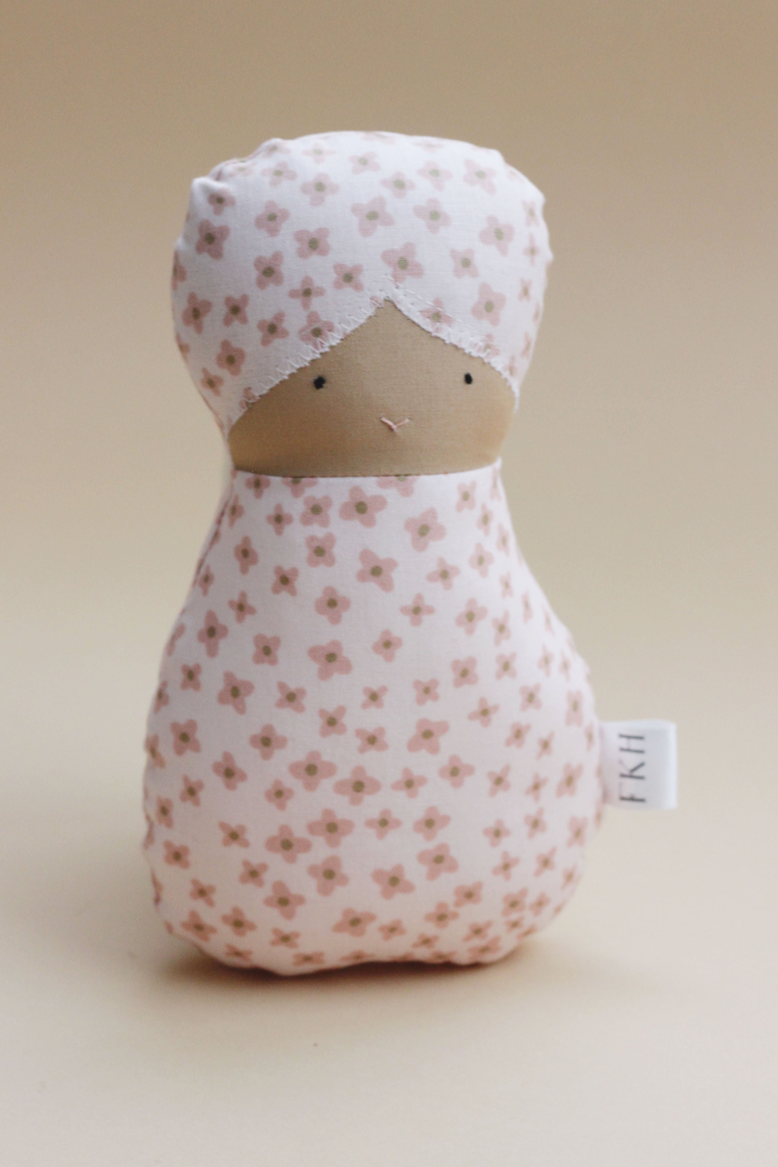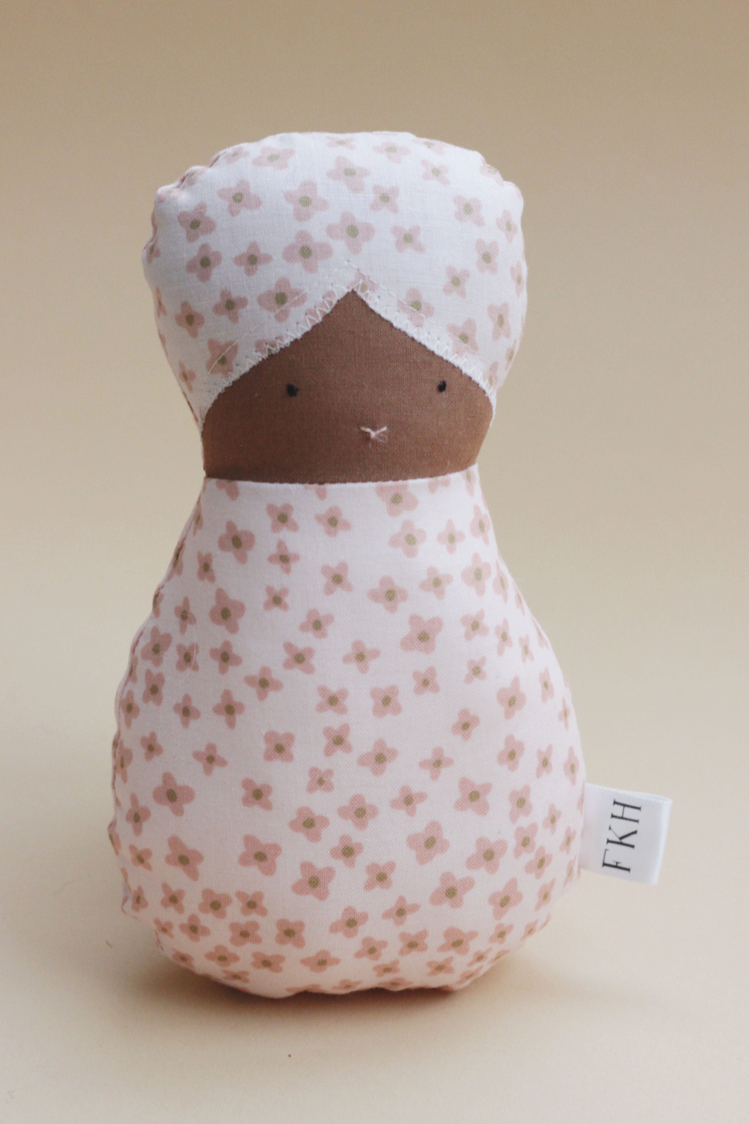 These First Baby Dolls are intentionally designed to facilitate maximum imagination and play. With early development in the forefront of our minds, we’ve created a doll that will allow young children aged 6 months and up the chance to grow their social and emotional skills. From fitting perfectly in little hands, to the weight of each doll, to the face. All the details have been researched, and handmade love poured into each stitch.